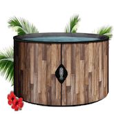 Piscine gonflable de qualité premium avec finition imitation bois. Capacité 1200 litres, idéal pour 4 personnes. Diamètre 180 cm, hauteur 70 cm. Technologie Dropstitch pour une rigidité maximale.