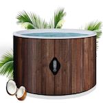 Piscine gonflable de qualité premium avec finition imitation bois. Capacité 1200 litres, idéal pour 4 personnes. Diamètre 180 cm, hauteur 70 cm. Technologie Dropstitch pour une rigidité maximale.