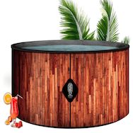 Piscine gonflable de qualité premium avec finition imitation bois. Capacité 1200 litres, idéal pour 4 personnes. Diamètre 180 cm, hauteur 70 cm. Technologie Dropstitch pour une rigidité maximale.
