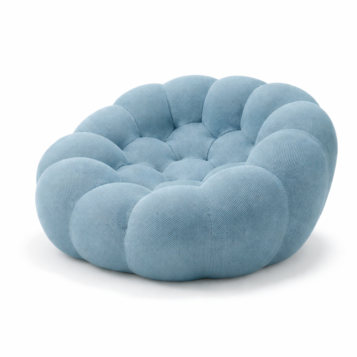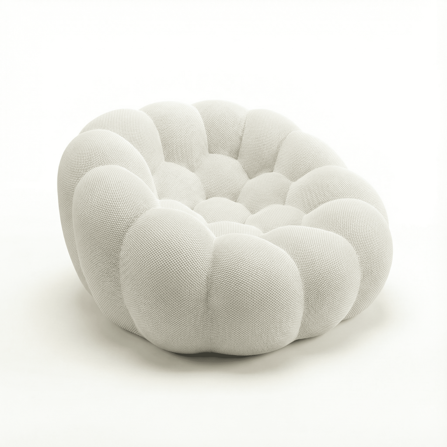Véritable nid douillet, son assise très profonde et son dossier sculptural offrent un accueil immersif qui épouse parfaitement les formes du corps. L'expérience sensorielle est au cœur de sa conception : chaque alvéole de mousse travaille pour offrir un soutien moelleux et rebondi, transformant chaque instant en un moment de déconnexion totale.