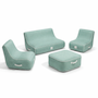 Salon de jardin gonflable complet Coco Lounge. Set incluant fauteuils, canapé et pouf coordonnés. Disponible en plusieurs coloris de la collection. Housse Olefin 280 g, pompe électrique sur batterie fournie.