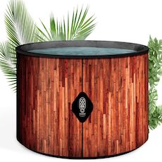 Spa gonflable de qualité premium avec finition imitation bois. Capacité 800 à 1200 litres selon modèle.