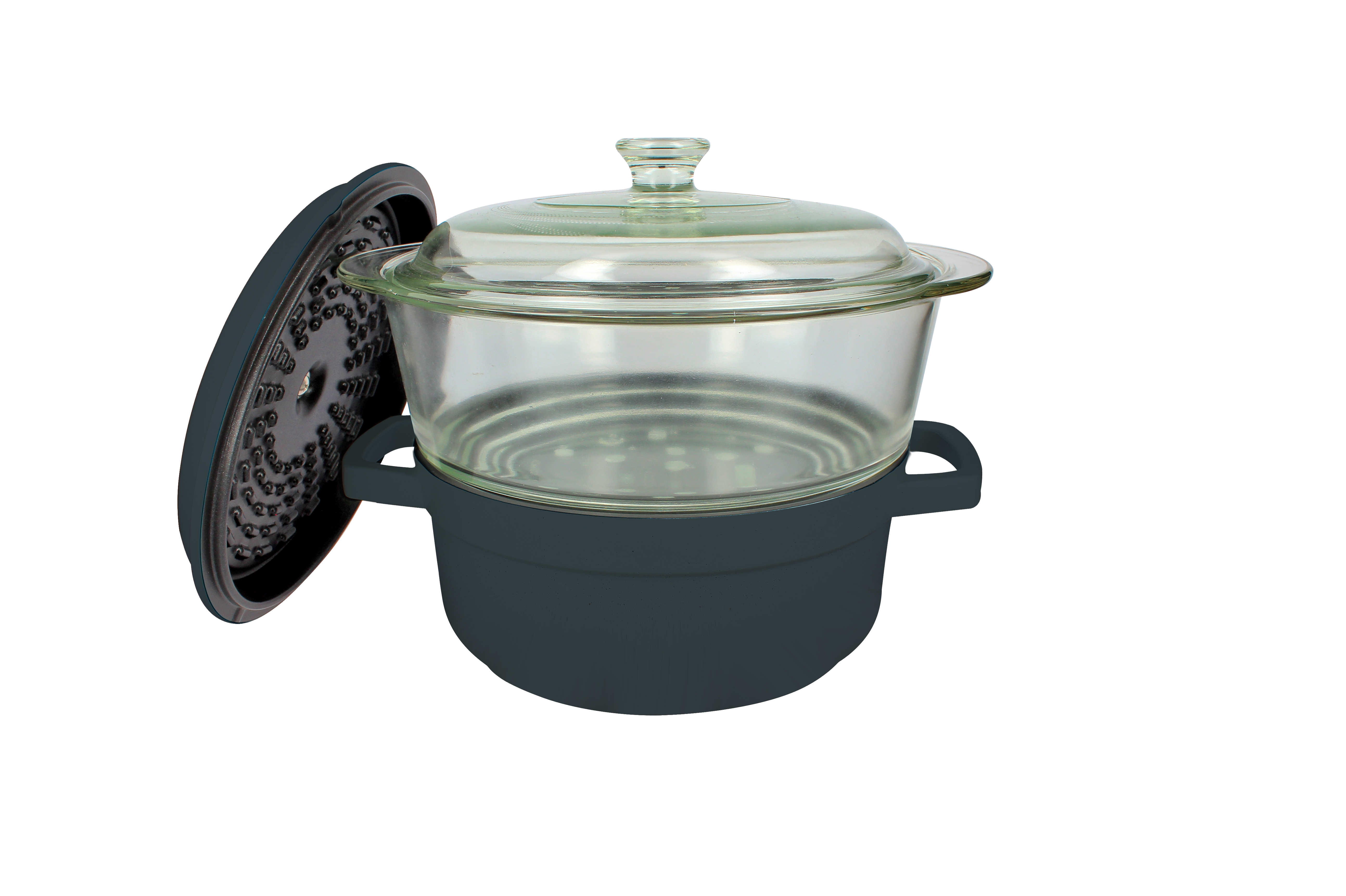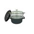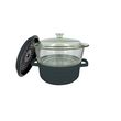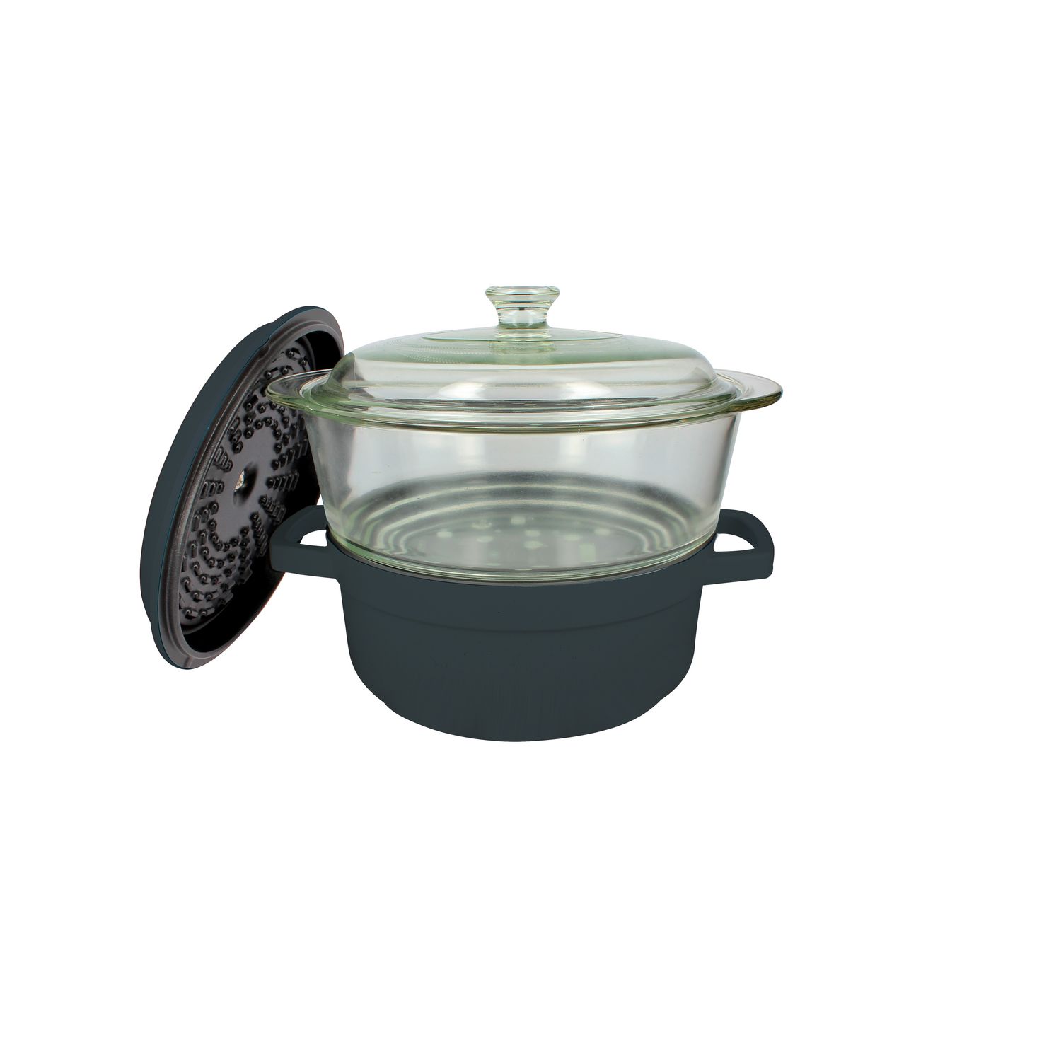Cocotte et couvercle en fonte d'aluminium 24 cm gris anthracite + panier vapeur et couvercle en verre