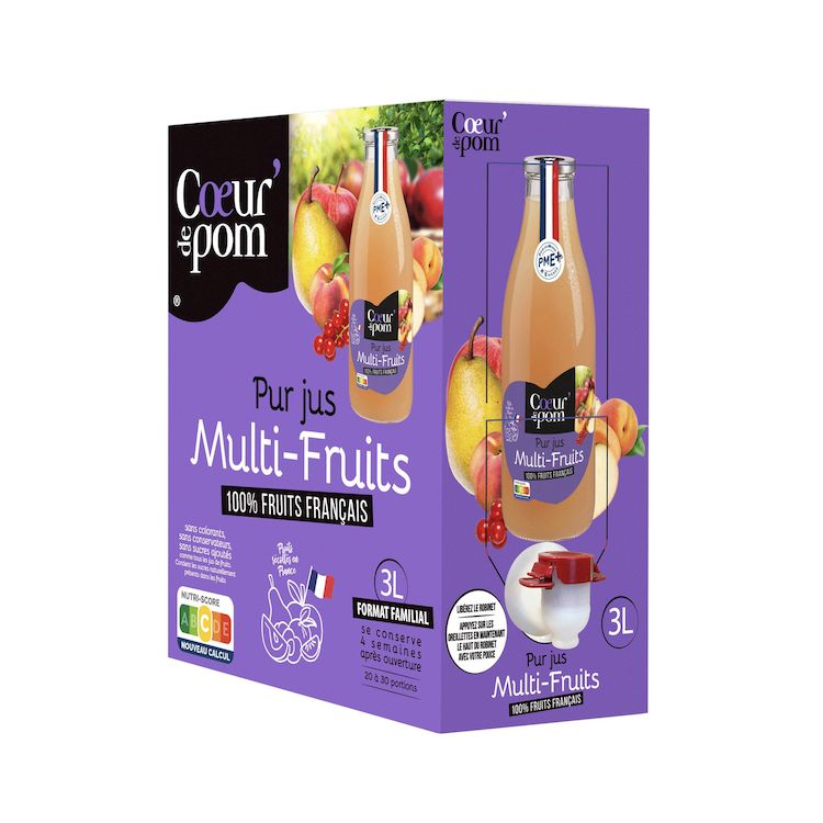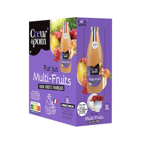 Le 1er pur jus multifruits 100% français conditionné en Bag In Box : plus écologique, plus facile à conserver et à utiliser.