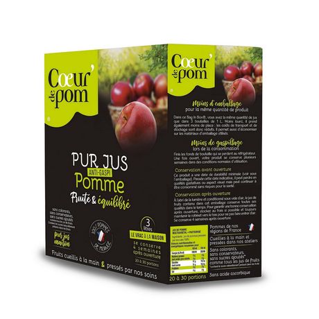 Jus de pomme agréable au goût et qui se conserve bien une fois ouvert grâce au vide d'air du système.
