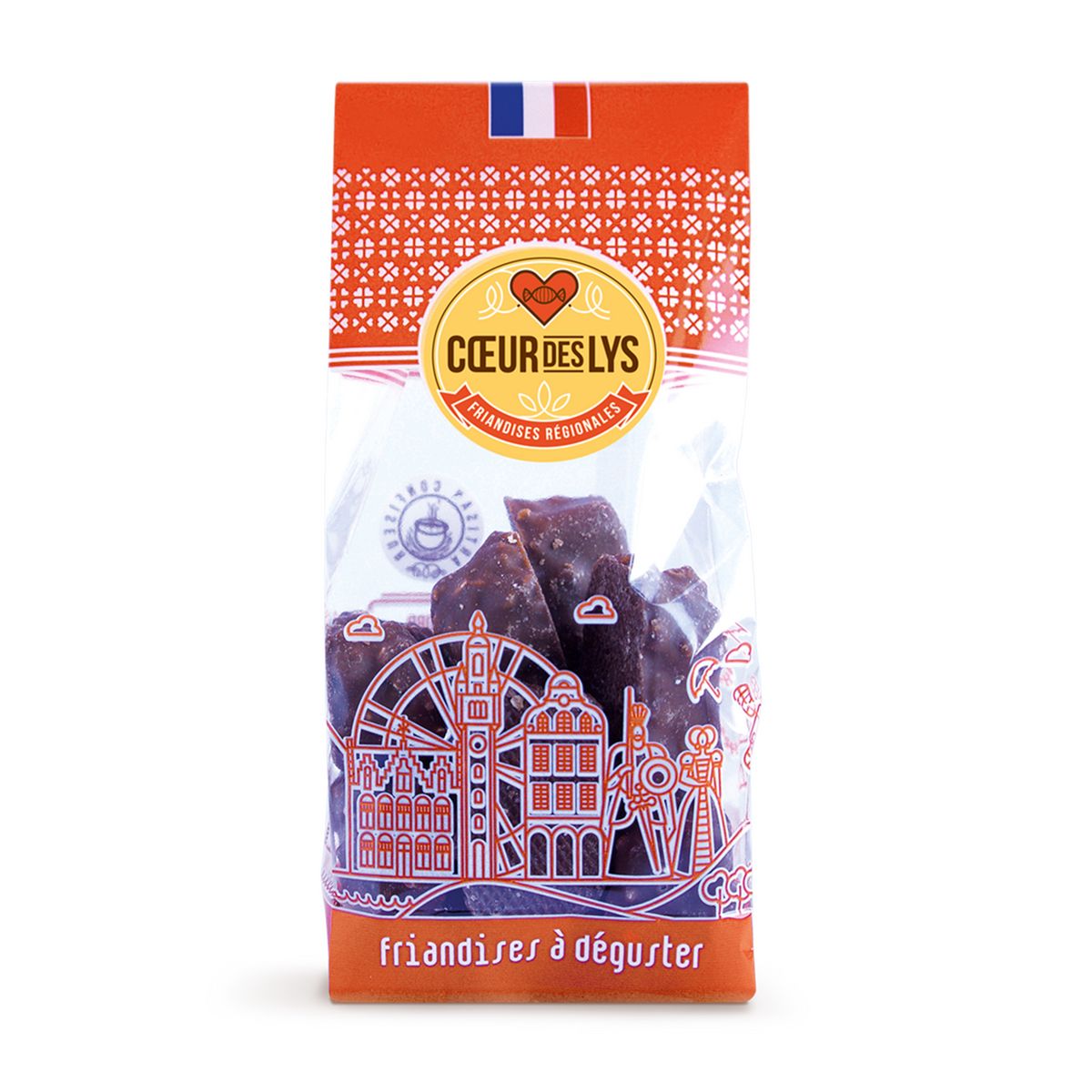 Sachet de Rochers Nougoff, ce sont de bons nougats aux amandes grillées enrobés de chocolat au lait et de pralines