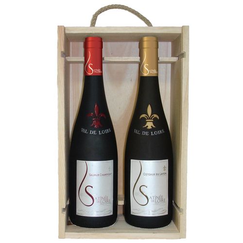 Coffret bois AOP Coteau du Layon et Saumur Champigny Satinée de Loire rouge