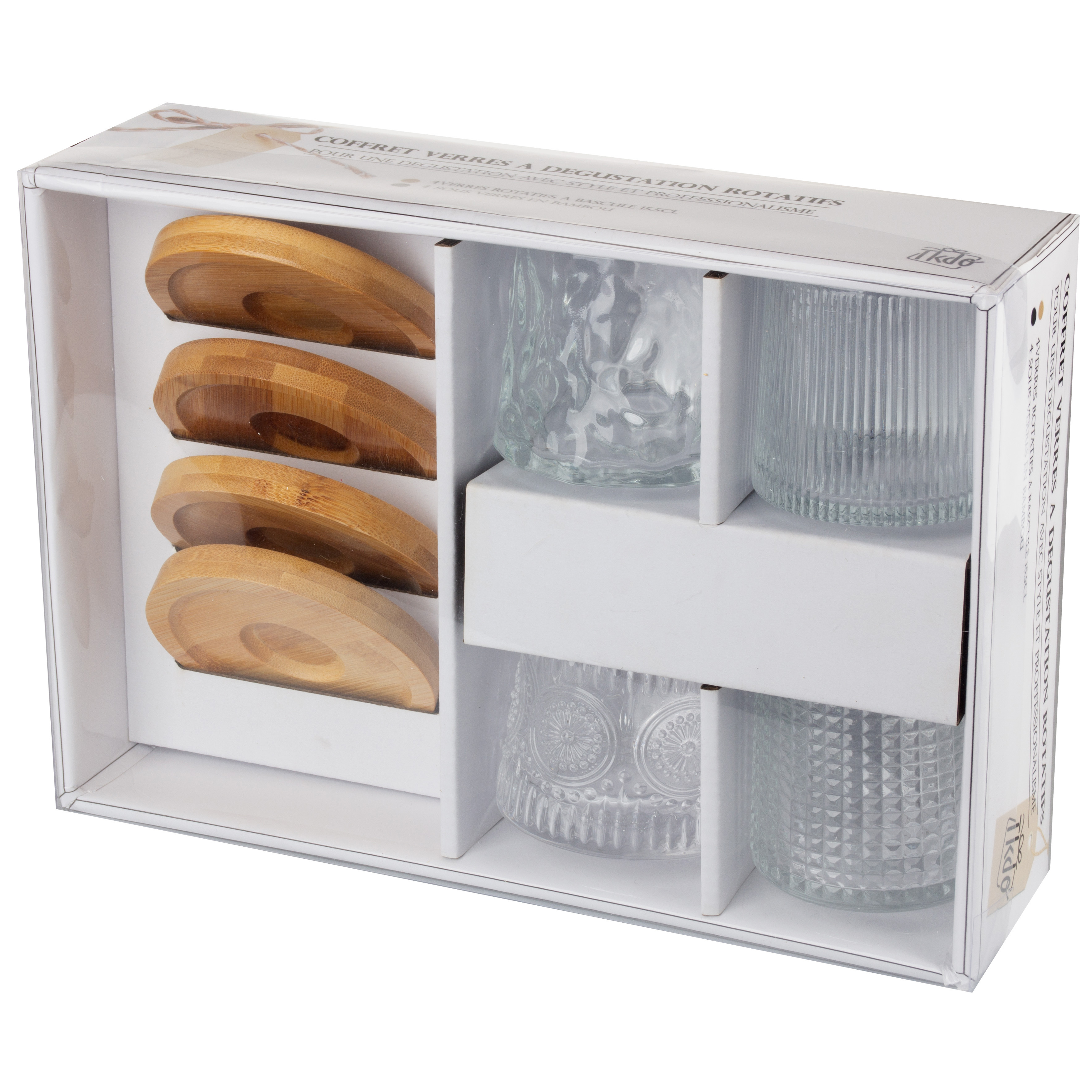 Coffret cadeau 4 verres à whisky 16cl avec 4 dessous verre en bois