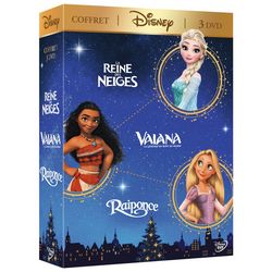 Coffret DVD Vaiana la Légende du bout du monde, La reine des neiges, Raiponce