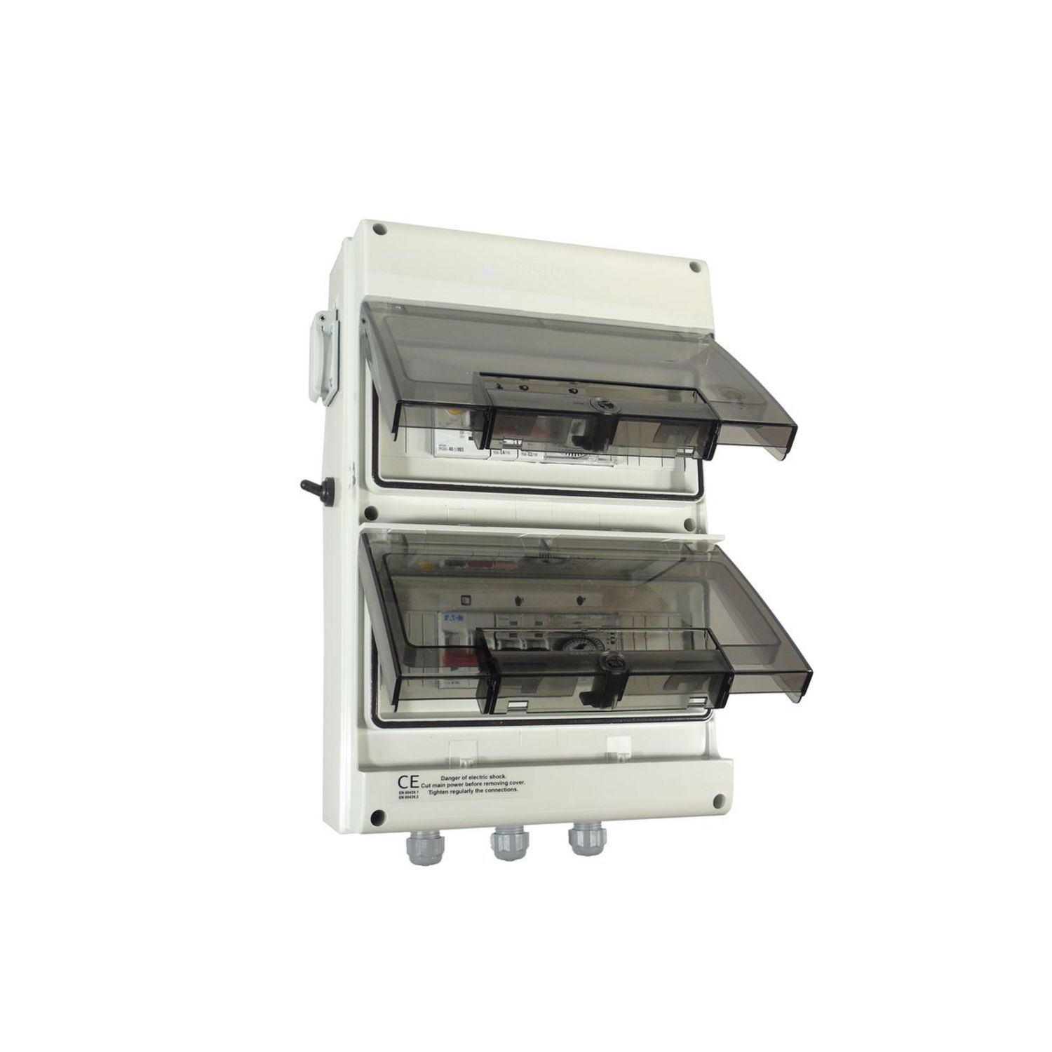 Coffret électrique Premium - Puissance 3000 Watt, 2 raccords direct au boitier (pompes filtration et chaleur), 3 raccords pour prise, 2 minuteries (réglage des temps de filtration et éclairage), IP66, IK07, 2 rails DIN EN50022 - H40 x 25,6 x 14 cm