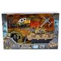 Partez à l'aventure et combattez l'ennemi avec ce grand ensemble comprenant un hélicoptère, un avion, un char, une figurine, un camp et des accessoires.