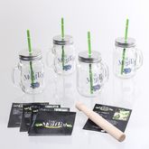 4 verres 50 cl à anses avec couvercles + 4 pailles + 1 pilon + 1 livret de recettes