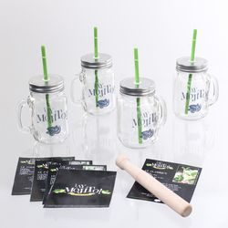 Offrez pour les fêtes de fin d'année ce coffret complet. Idéal pour les amateurs de mojito, vous trouverez toutes la panoplie pour préparer des mojitos fait maison : 4 verres à anses + couvercles, 4 pailles, 1 pilon et 1 livret de recette.