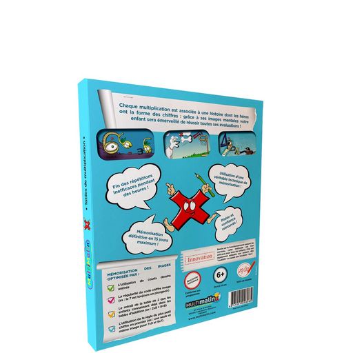 Dans la progression d'apprentissage des multiplications, après le travail sur le sens mathématique vient le temps de la mémorisation des tables de multiplication. La mémorisation de ces dernières en les répétant pendant des heures est un travail fastidieux et inefficace pour beaucoup d'enfants. Pour remédier à ce problème, la méthode Multimalin s'appuie sur une spécificité du fonctionnement du cerveau : l'association d'images mentales. Concrêtement, dans cette méthode, les chiffres sont transformés en personnage ou objet et se mettent en scène pour associer l'image de la multiplication avec l'image du résultat grâce à une petite histoire amusante. Pour chaque multiplication, l'enfant pourra ensuite visualiser ses images mentales pour trouver à chaque fois le bon résultat ! Dans le DVD, les histoires sont racontées dans de courts dessins animés amusants pour les rendre encore plus captivantes. Le cahier d'apprentissage complète la mémorisation par une travail de verbalisation (langage) et amène progressivement l'enfant à utiliser ses images mentales pour écrire les résultats sans erreur. Enfin, particulièrement ludiques, les cartes permettent de jouer avec les images afin de travailler la vitesse de récupération des images mentales pour retrouver les résultats des tables de multiplication de manière automatique et instantannée.