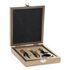 Coffret sommelier 4 pièces Composition : Tire-bouchon + Bague + 2 Bouchons Bouchon + Bouchon verseur : matière zinc Bout du bouchon + Bout bouchon verseur : matière Silicone