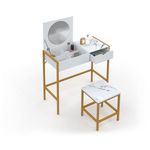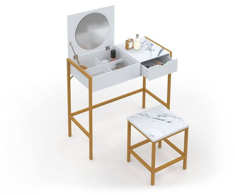 Coiffeuse avec miroir rabattable et tabouret effet marbre BELLE