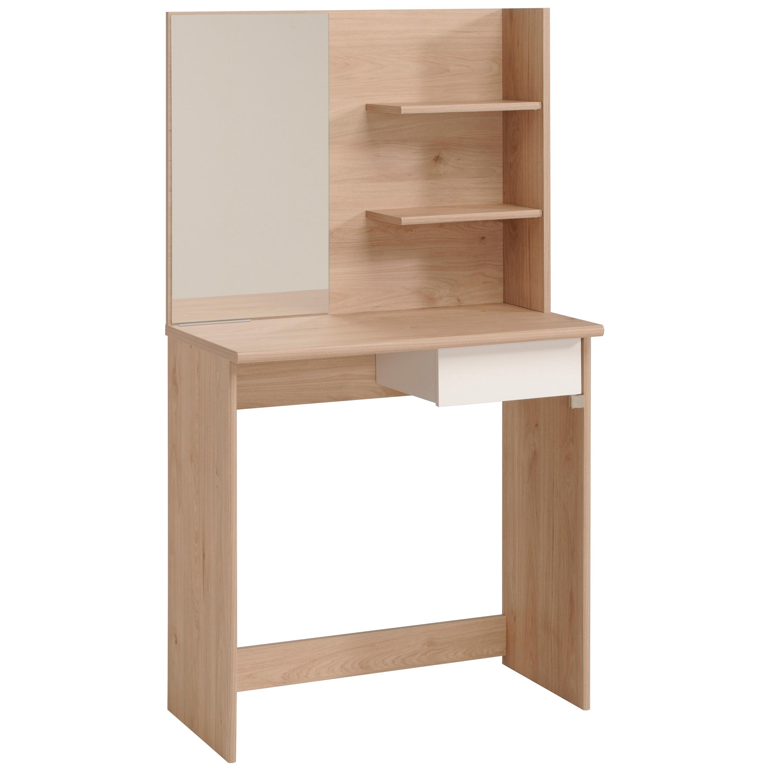 Un grand miroir H62cm. 2 tablettes à portée de main. 1 support pour tenir le mobile afin de pouvoir consulter les tutoriels beauté tout en se regardant dans le miroir. Tabouret vendu séparément référence CA1016872.