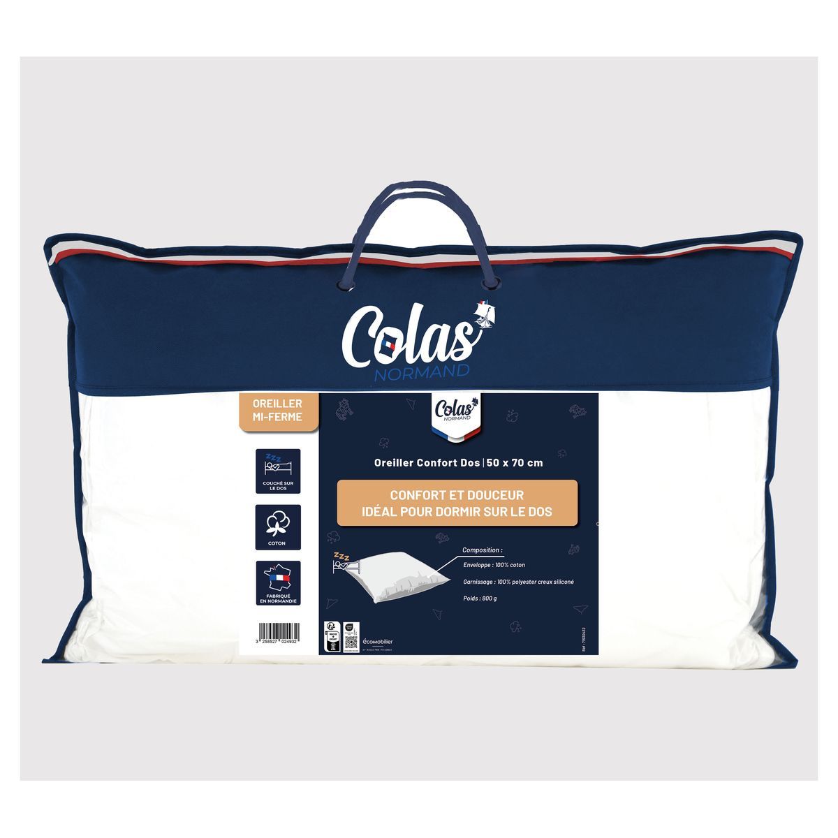 Oreiller confort mi-ferme en coton idéal pour dormir sur le dos