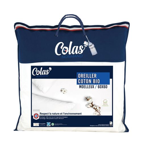 Oreiller confort moelleux en 100% coton bio. Oreiller respectueux de la nature et de l'environnement. Fabriqué en France.