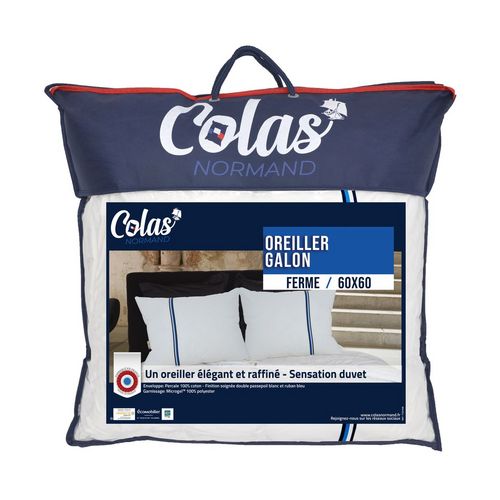 Oreiller ferme en percale de coton sensation duvet GALON BLEU