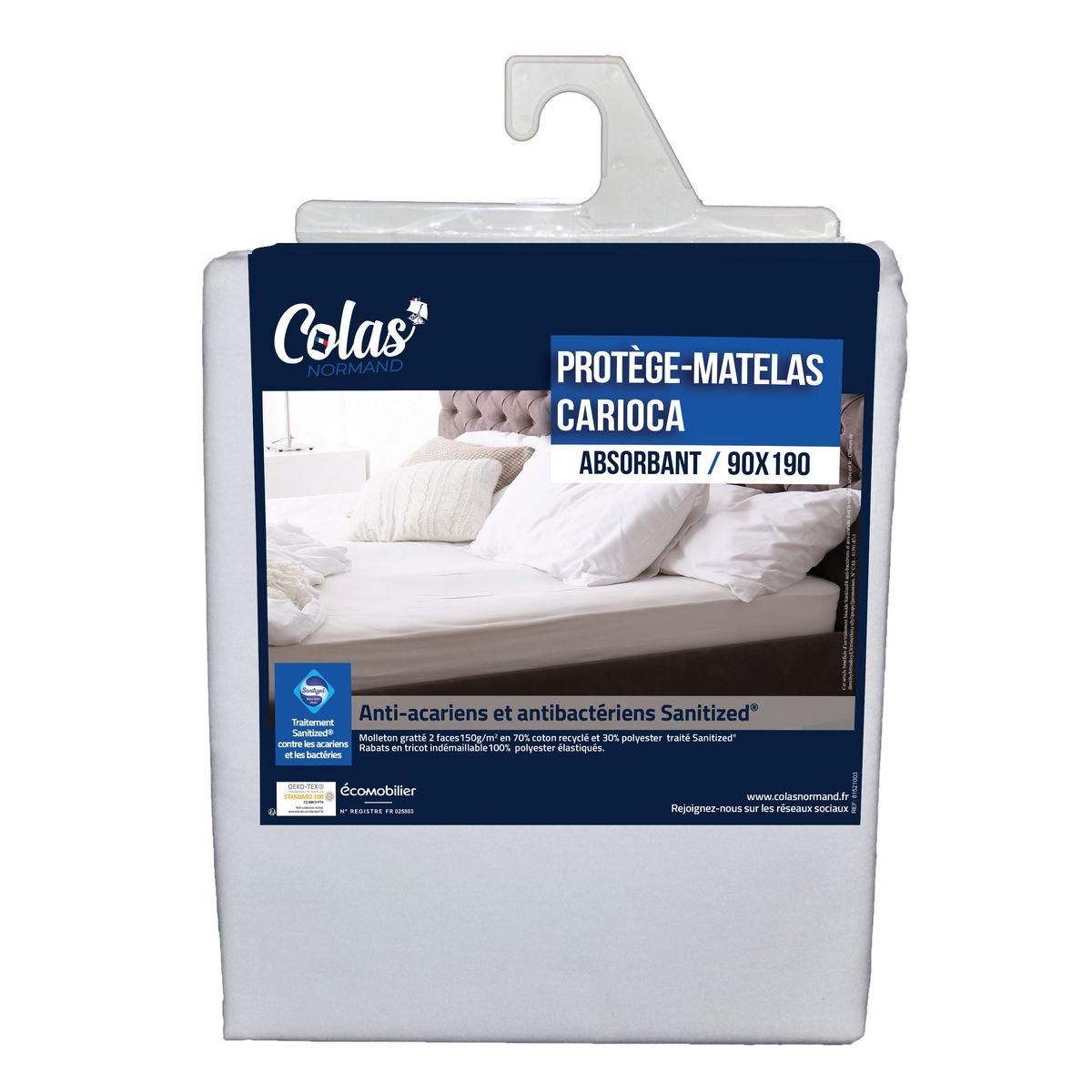 Protège matelas absorbant en polycoton, traité anti-acariens et anti-bactériens Sanitized CARIOCA. Cette protection vous permettra de protéger votre matelas des tâches et d'empêcher les mauvaises odeurs de s'incruster.