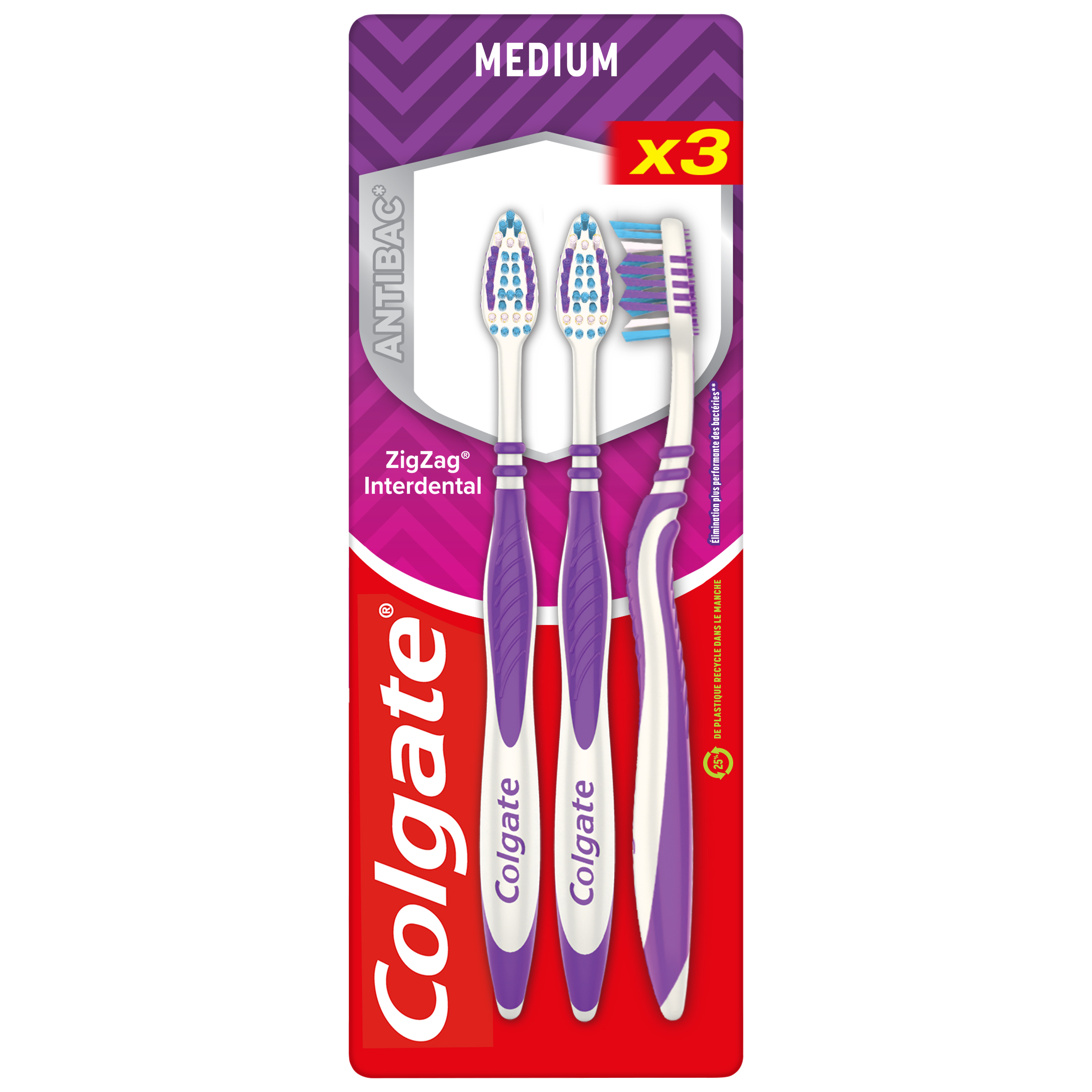 La brosse à dents Colgate ZigZag possède des poils entrecroisés qui permettent d'atteindre les espaces interdentaires en profondeur pour un nettoyage complet. Le brosse-langue enlève en douceur les bactéries responsables de la mauvaise haleine.
