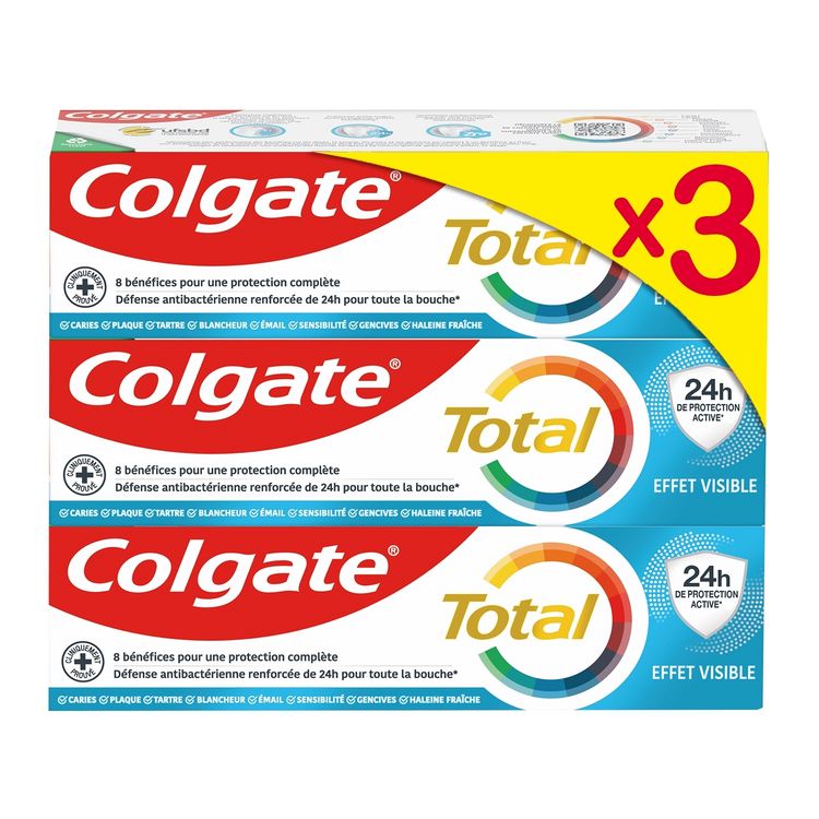 Le dentifrice Colgate Total Action Visible change de couleur : lorsque vous vous brossez les dents, sa mousse blanche devient bleue. Pour être sûr(e) de faire le maximum pour votre santé buccodentaire, il vous faut une action visible !