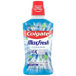 Le bain de bouche Colgate Max Fresh Clean & Fresh vous offre une fraîcheur qui dure 10 fois plus longtemps* grâce à sa technologie FreshFX.*sensation fraîcheur par rapport à un brossage seul.