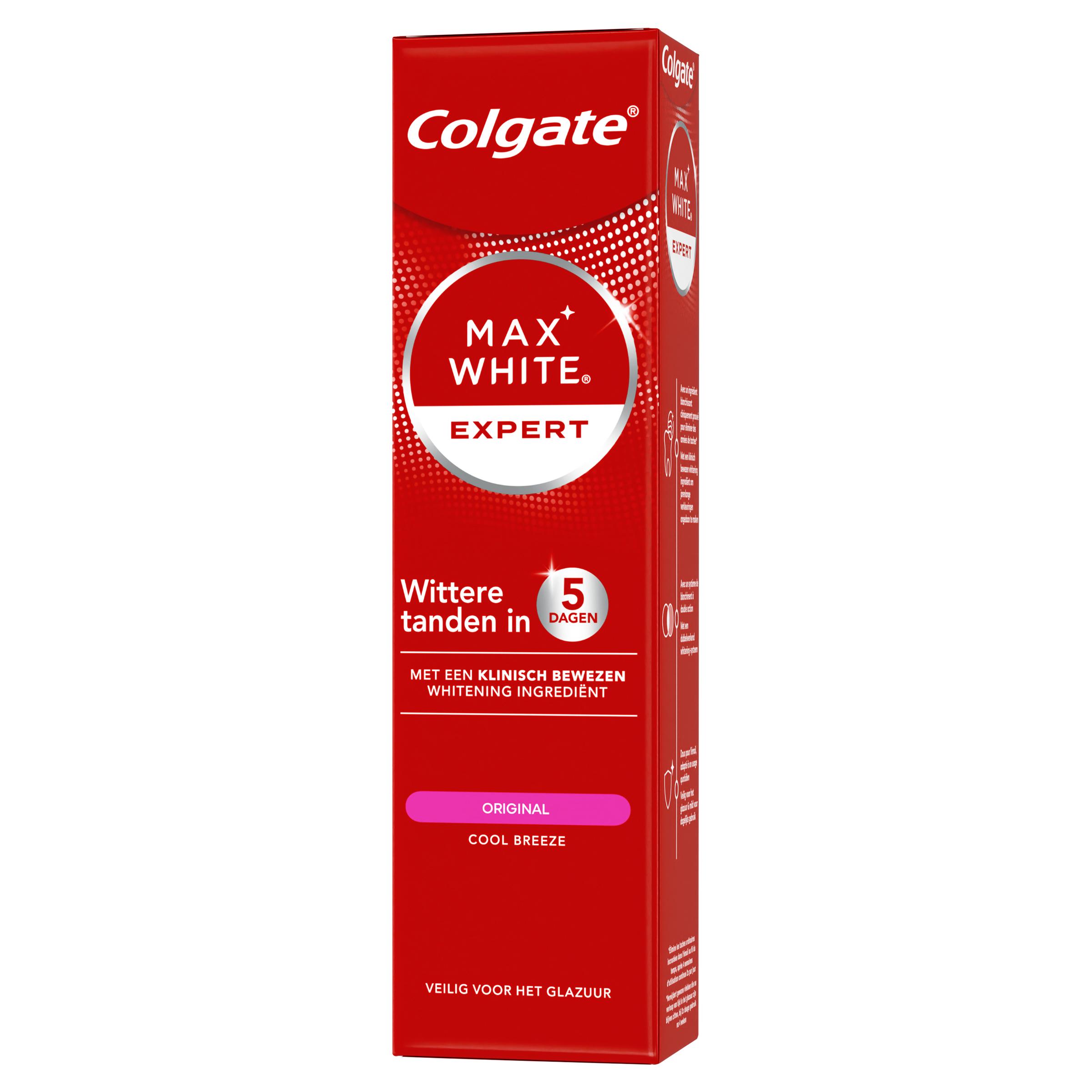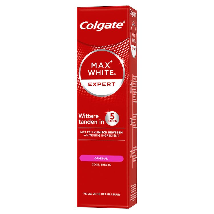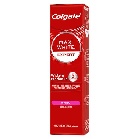 Essayez le dentifrice Colgate Max White Expert Original pour des dents plus blanches en 5 jours ! Ce dentifrice au peroxyde d’hydrogène double action élimine les taches en surface et sous l’émail.