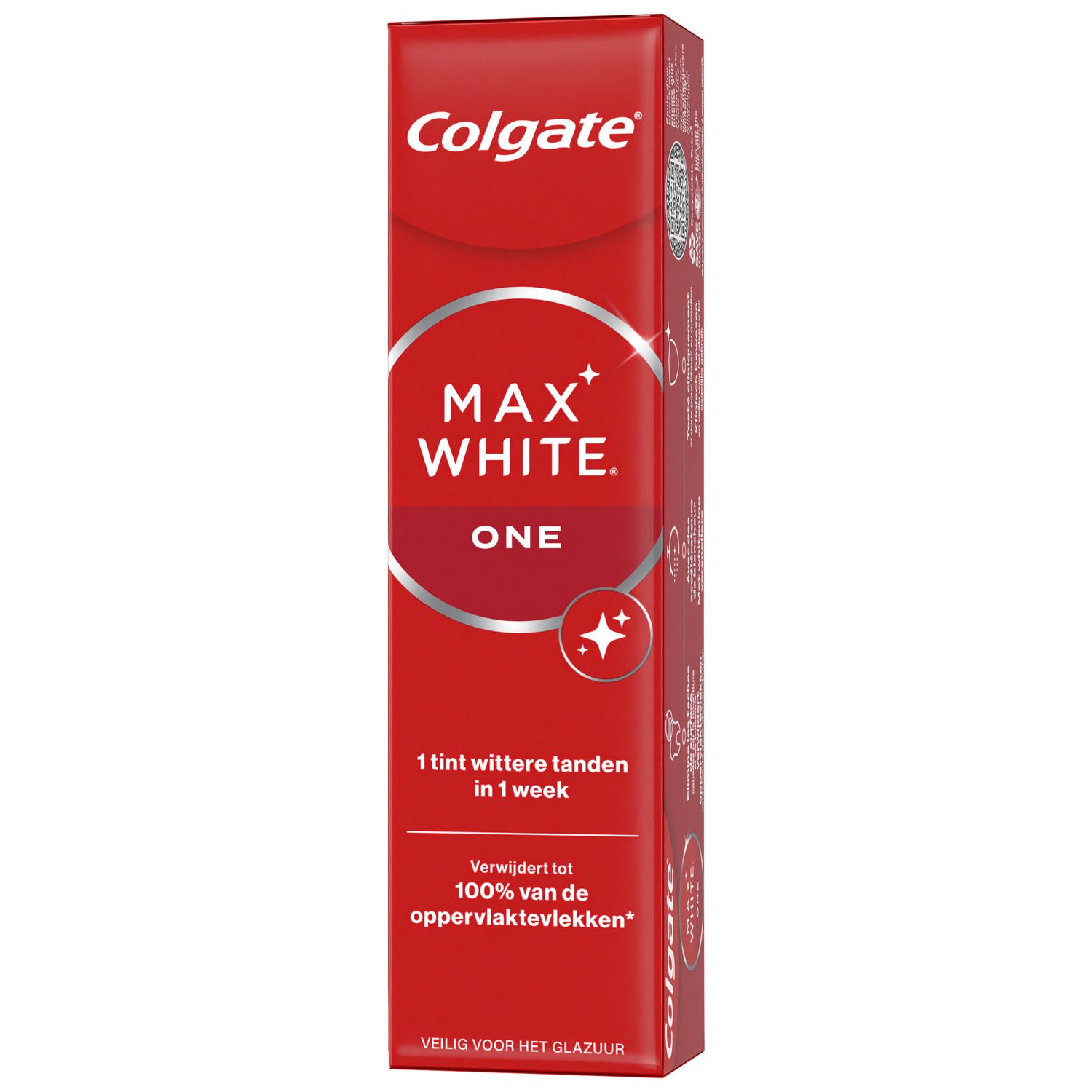 Obtenez un sourire éblouissant en vous brossant les dents avec le dentifrice Colgate Max White One. Ce dentifrice blancheur possède une formule cliniquement prouvée qui élimine jusqu'à 100% des taches de surface, pour un sourire éclatant. Grâce à ses accélérateurs de blancheur, ce dentifrice blancheur vous aide à obtenir des dents plus blanches d'une teinte en seulement une semaine !