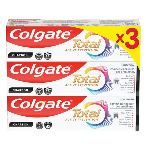 Le dentifrice blancheur Colgate Active Prevention Charbon est cliniquement prouvé et prévient les problèmes bucco-dentaires avec une protection antibactérienne pendant 24 heures*.