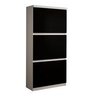 Vous recherchez un meuble de rangement pour votre salon et/ou votre séjour à la fois déco et fonctionnel? Ne cherchez plus ! Cette colonne de rangement bicolore en panneaux de particules à la finition brillante ultra moderne saura répondre parfaitement à vos attentes ! Dotée de 3 portes battantes, e