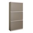 Colonne de rangement 3 portes battantes, 2 étagères en agglo avec une structure en panneau de particules agglomérés écologiques E1 épaisseurs 18mm (structure et étagères) et 38 mm (le dessus), laqué (laquage + vernissage à rayons ultraviolets).
