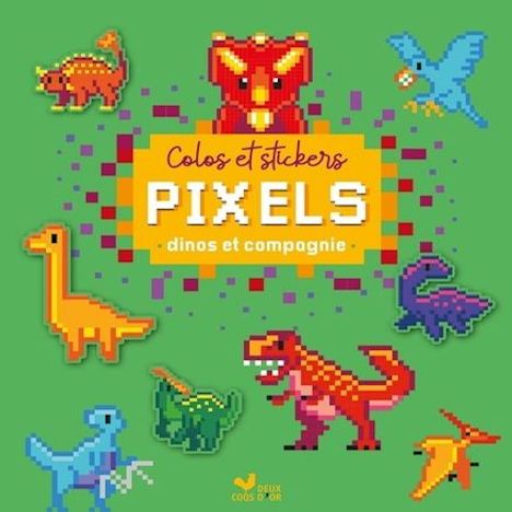 Un cahier de 32 pages proposant 25 coloriages pixels à colorier et à compléter avec 4 planches de stickers . 3 planches de stickers pixels de toutes les couleurs, soit plus de 2000 pixels autocollants + 1 planche d'environ 20 stickers représentant des animaux. 4 principes de coloriages : des colos guidés avec petits carrés de couleur , des dessins à compléter par symétrie horizontale ou verticale , de grandes scènes illustrées à compléter avec les stickers d'animaux , 8 coloriages à codes (1 chiffre = 1 couleur). Les dessins en couleurs sont présentés en fin de cahier. Thématique : les dinosaures et animaux ayant vécu à la même époque.