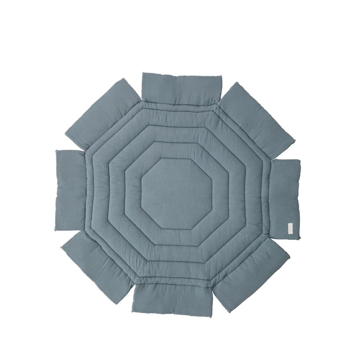 Tapis de Parc Octogonal Bicolore en Gaze de Coton Gris Ardoise - Confort et Sécurité pour Bébé