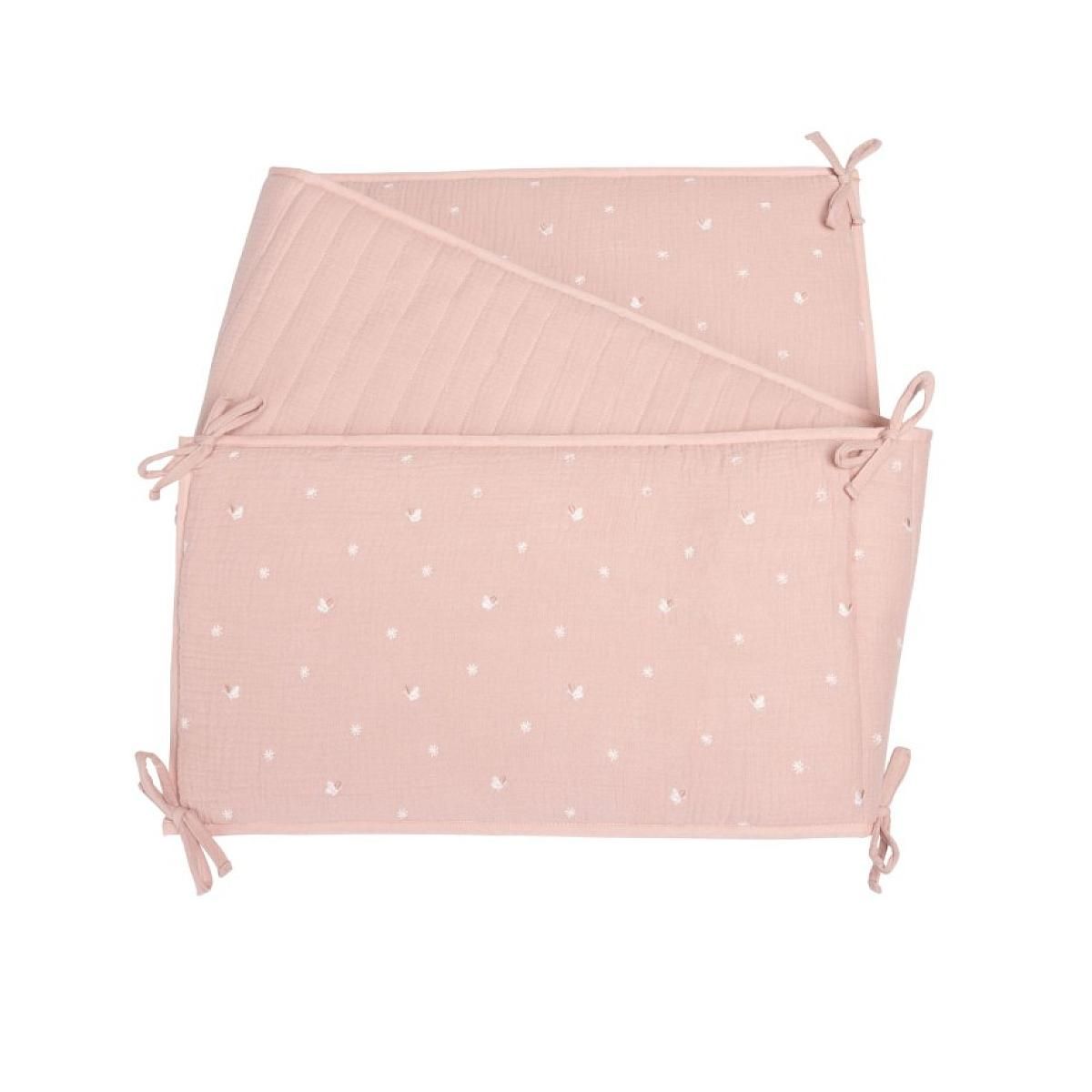 Tour de lit, double gaze de coton bio, padding recyclé - Promenade Bucolique Rose clair