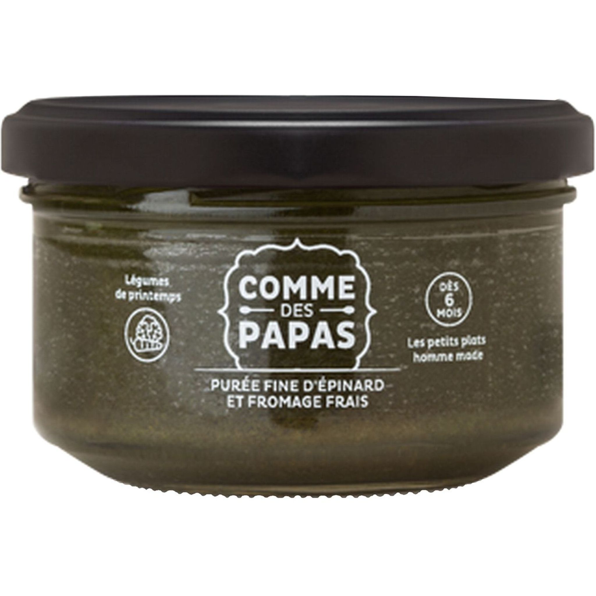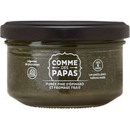 Purée fine d'épinard et fromage frais - Dès 6 mois L’épinard a longtemps été utilisé pour ses vertus médicinales. Il semblerait que ce ne soit qu’au 16ème siècle qu’il fut abondamment cultivé en France pour son goût grâce à Catherine de Médicis, qui le rendit populaire. D’abord préféré en version sucrée, il fut ensuite décliné en version salée. Avec ses belles feuilles vertes et foncé, gorgées de vitamines du groupe B, de fibres et des minéraux tels que le magnésium, notre chef vous le propose aujourd’hui notre chef vous le propose en purée fine* accompagnée d’une pointe de fromage frais pour faire découvrir à votre bébé toute la subtilité de ce légume. *Existe aussi pour les petits carnivores