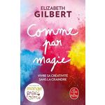 Depuis près de dix ans, les livres d'Elizabeth Gilbert, auteur du best-seller Mange, prie, aime , inspirent ses lecteurs. Avec Comme par magie , elle puise dans son propre processus de création pour partager son point de vue unique sur la créativité. Elle nous invite à découvrir les trésors cachés qui sommeillent en chacun de nous et à les mettre en pratique pour être créatif au quotidien (dans la famille, la vie professionnelle, l'amitié, les loisirs, etc.). En exposant les six forces qui permettent de libérer notre créativité (courage, enchantement, permission, persistance, confiance et divinité), elle nous ouvre les portes d'un monde de merveille et de joie.