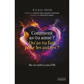 Un ouvrage poignant et éclairant sur l'au-delà ! Comment as-tu aimé ? Qu'as-tu fait pour les autres ? Telles sont les questions posées à Nicole Dron lors de son incursion dans l'au-delà suite à une EMI, et auxquelles nous serons certainement, nous aussi, appelés à répondre un jour... Depuis son expérience de mort imminente, Nicole Dron n'a eu de cesse de partager sa magnifique expérience avec la certitude que seuls la Vie et l'Amour ont un sens. Dans cet ouvrage, l'auteure répond aux nombreuses questions qui nous taraudent et nous interpellent tout au long de notre existence. Quels sont le sens et le but de la vie, comment se déroule l'après-vie, qu'en est-il du suicide, sommes-nous soumis à un karma individuel et collectif, le futur de l'humanité est-il programmé, qui se cache derrière le nom de Dieu, où se situe notre conscience ? Echanges profonds et éclairés sans omettre les sujets sensibles. Que deviennent nos enfants dans l'au-delà ? Comment reverrai-je tous ceux que j'ai aimés si, à mon décès, ils sont déjà réincarnés ? Retrouverai-je mon animal de compagnie ou encore, pourquoi tant de souffrance en ce monde ? Autant de questions existentielles qui nous invitent à cheminer vers plus de sagesse, en partageant les confidences de l'auteure de coeur à coeur, d'âme à âme, teintées d'humour vivifiant, de tact et de discernement.