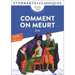 Les cinq protagonistes de Comment on meurt ont un point commun : ils vont mourir d'une minute à l'autre. En mettant en scène un paysan, un fils d'ouvrier, une commerçante, une femme bourgeoise et un noble, Zola montre que, contrairement à l'adage, nous ne sommes pas tous égaux devant la mort. TOUT POUR COMPRENDRE - Notes lexicales - Biographie de l'auteur - Contexte historique et littéraire - Genre de l'oeuvre - Chronologie TOUT POUR REUSSIR - Questions sur l'oeuvre - Microlectures - Travaux d'écriture - Histoire des arts - Education aux médias et à l'information - Un livre, un film GROUPEMENT DE TEXTES - Le parcours du personnage au XIX ? siècle CAHIER PHOTOS.