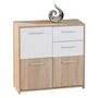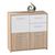 Commode 3 portes - 5 tiroirs couleur chêne clair et blanc.