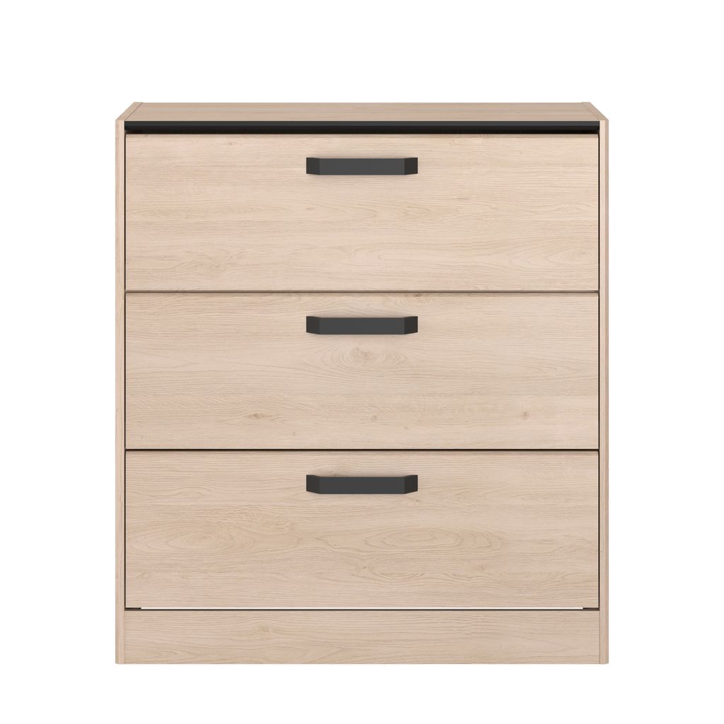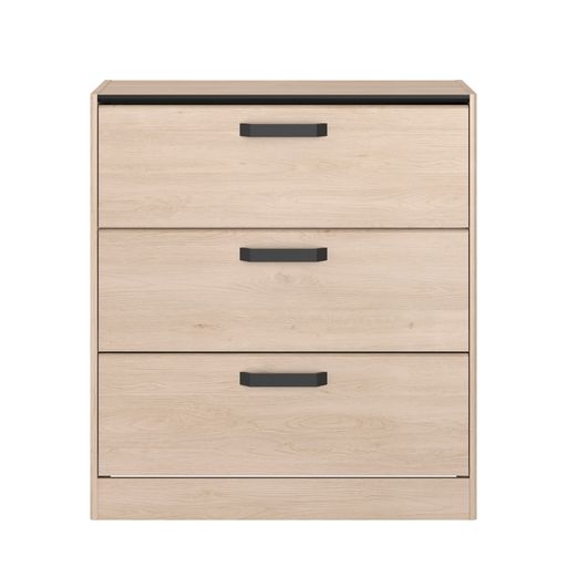 La commode DOWNTON au décor chêne du Japon allie élégance et fonctionnalité. Avec des dimensions de L80 x H88 x P44 cm, elle est fabriquée en panneaux de particules robustes et équipée de poignées en métal pour une touche moderne et durable. Ses trois tiroirs spacieux offrent un espace de rangement suffisant pour le linge de lit, les chaussettes ou d'autres petits objets du quotidien. Fabriquée en France, cette commode apporte à la fois style et praticité à votre intérieur.