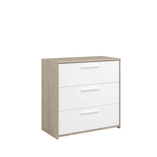 La commode Norway est un meuble de rangement idéal pour une chambre, une entrée ou un dressing. Fabriqué en France, cette commode associe le blanc et la couleur chêne très tendance et s'harmonisant facilement dans votre intérieur.