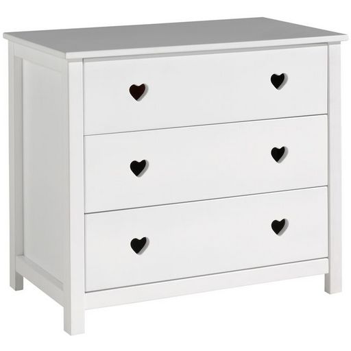 Ouverture des tiroirs motif cœur - En pin et MDF - Coloris blanc finition laquée