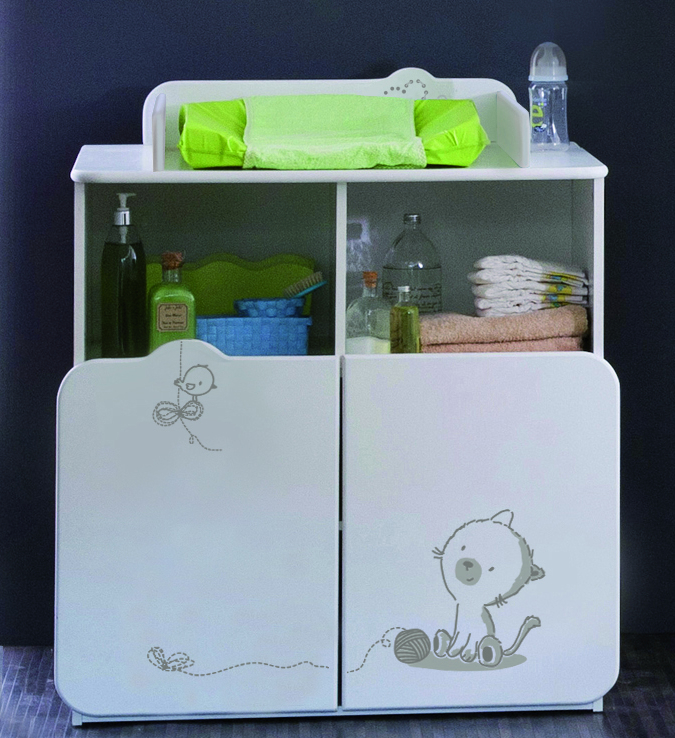 Découvrez cette superbe commode à langer de la chambre bébé CHATON. Avec ses dimensions avantageuses H101 x P73 x L87 cm et ses rangements intérieurs : 2 niches, 1 étagère. Elle vous permettra de ranger tout le nécessaire de bébé. De plus, le dispositif à langer peut se retirer lorsque vous n'en aurez plus besoin, ce qui vous permettra d'utiliser la commode seule comme meuble de rangement. N'hésitez pas à l'associer aux autres meubles de la chambre bébé CHATON : le lit bébé à barreaux 60 x 120 cm et l'armoire de rangement.