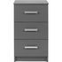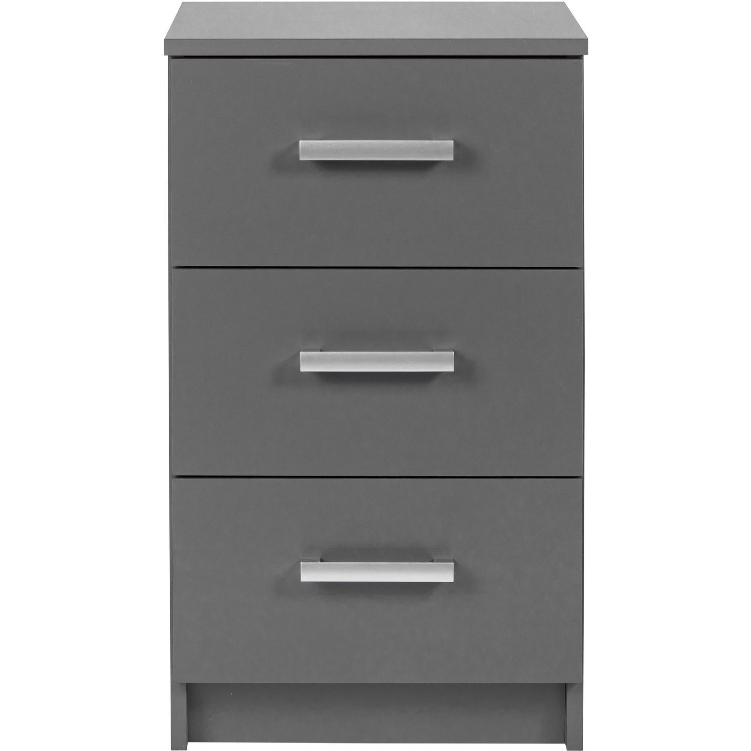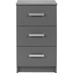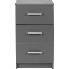 La série Elenzio est intemporelle et combine une commode classique avec une touche de modernité grâce à sa couleur tendance. En panneaux de particules, revêtement mélaminé gris. Facile d'entretien et particulièrement résistant. Avec d'élégantes poignées coloris chromées sur le devant des tiroirs. Avec 3 tiroirs sur glissières métalliques.
