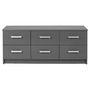 La série Elenzio est intemporelle et combine une commode classique avec une touche de modernité grâce à sa couleur tendance. En panneaux de particules, revêtement mélaminé gris. Facile d'entretien et particulièrement résistant. Avec d'élégantes poignées coloris chromées sur le devant des tiroirs. Avec 6 tiroirs sur glissières métalliques.