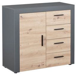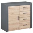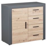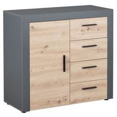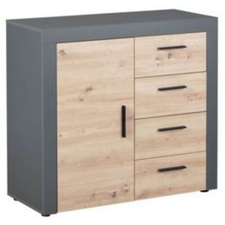 La commode de rangement BETO décor chêne artisan et anthracite apportera un style contemporain à votre intérieur. Elle dispose de quatre tiroirs et d’une porte pour un rangement optimal.