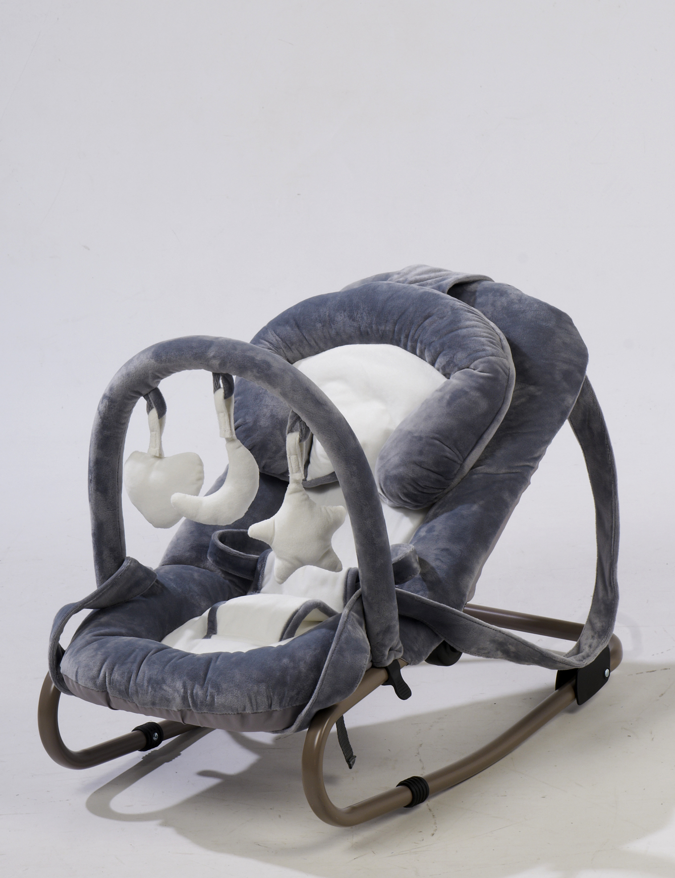 Le transat en velours gris Babyrocker est idéal pour votre bébé ! Avec sa large têtière amovible et son assise molletonnée, bébé sera confortablement installé dans son transat. Avec la petite arche de jeux présente et ses 3 petites peluches, bébé pourra commencer à s'éveiller. Le dossier est inclinable en 3 positions pour plus de confort. Pratique, ce transat bébé Babyrocker dispose d'anses de transport pour pouvoir facilement le déplacer.
