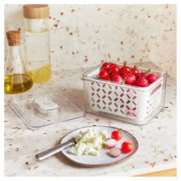 Conserve très bien les crudités et sa petite taille lui permet de se glisser dans le frigo facilement. Je l’utilise régulièrement et ne regrette pas mon achat.
